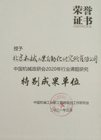 北自所被評為中國機(jī)械政研會2020年行業(yè)課題研究“特別成果單位”。