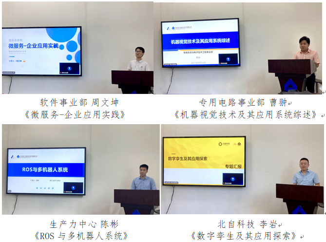 會上,來自軟件事業(yè)部的周文坤、專用電路事業(yè)部的曹翀、生產(chǎn)力中心的陳彬以及北自科技的李巖四名青年技術(shù)骨干,分別從基礎(chǔ)概念、發(fā)展趨勢、在智能制造領(lǐng)域的應(yīng)用、關(guān)鍵技術(shù)點及常用工具幾個方面,進(jìn)行了講解。通過詳細(xì)的論述,并結(jié)合豐富的實例,為參賽隊伍提供了技術(shù)支持,增加了青年在對應(yīng)研究方向上的知識儲備,夯實了研發(fā)基礎(chǔ)。