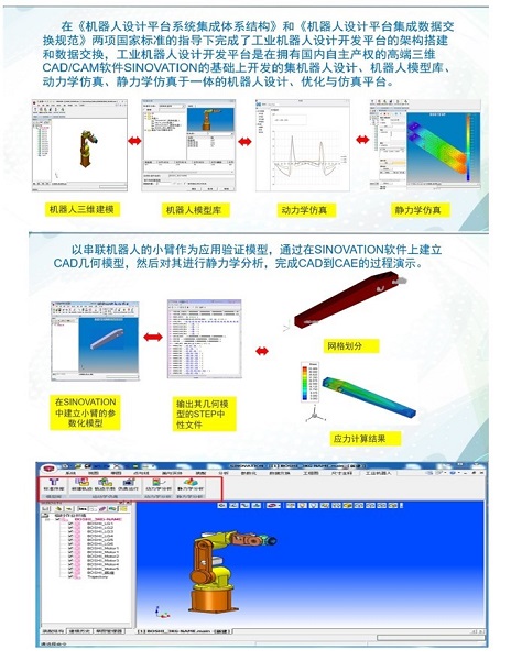 在國家863計劃先進(jìn)制造技術(shù)領(lǐng)域“基于CAD/CAE技術(shù)融合的工業(yè)機(jī)器人設(shè)計開發(fā)平臺”項目的支持下,北京機(jī)械工業(yè)自動化研究所有限公司成立標(biāo)準(zhǔn)研究組搭建CAD/CAE集成的體系架構(gòu),制定機(jī)器人設(shè)計平臺系統(tǒng)集成體系結(jié)構(gòu)和集成數(shù)據(jù)交換標(biāo)準(zhǔn),研發(fā)具有中國自主知識產(chǎn)權(quán)的工業(yè)機(jī)器人設(shè)計開發(fā)平臺。該系列標(biāo)準(zhǔn)解決了我國工業(yè)機(jī)器人正向設(shè)計能力缺乏的現(xiàn)狀,彌補(bǔ)了傳統(tǒng)的工業(yè)機(jī)器人設(shè)計方法的不足,在標(biāo)準(zhǔn)化研究方面填補(bǔ)了在機(jī)器人設(shè)計開發(fā)平臺領(lǐng)域的國內(nèi)外標(biāo)準(zhǔn)化空白,幫助企業(yè)縮短機(jī)器人設(shè)計周期,積累自主核心知識產(chǎn)權(quán),增強(qiáng)產(chǎn)品的科技含量與競爭能力,促進(jìn)企業(yè)向制造業(yè)產(chǎn)業(yè)鏈高端轉(zhuǎn)變。