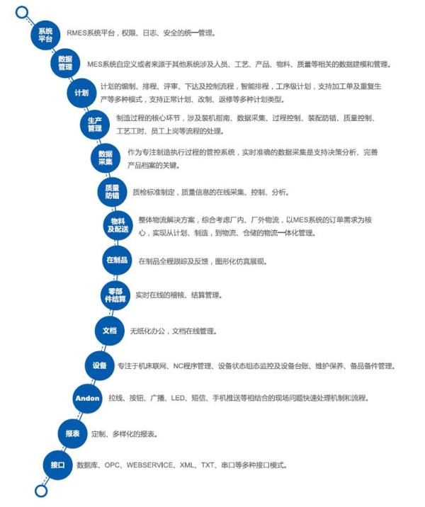RMES 3.0系統(tǒng)是北自所針對(duì)制造行業(yè)專門設(shè)計(jì)研發(fā)的MES系統(tǒng)平臺(tái),具有自主知識(shí)產(chǎn)權(quán),是在原有MES 1.0和2.0的基礎(chǔ)上,在工藝流程可配置、移動(dòng)應(yīng)用等方面進(jìn)行了全面提升。RMES 3.0包含生產(chǎn)建模、計(jì)劃、制造過程、質(zhì)量、倉儲(chǔ)物流、ANDON等管理模塊,并結(jié)合智能移動(dòng)應(yīng)用、大數(shù)據(jù)處理、智能報(bào)表平臺(tái)等先進(jìn)技術(shù),實(shí)現(xiàn)了發(fā)動(dòng)機(jī)裝配制造過程的數(shù)字化管控,從訂單下達(dá)到產(chǎn)品完成的整個(gè)生產(chǎn)過程進(jìn)行優(yōu)化管理,對(duì)工廠事件及時(shí)作出響應(yīng)、報(bào)告、跟蹤及處理。該系統(tǒng)在組織管理企業(yè)制造流程、優(yōu)化工藝流程和倉儲(chǔ)物流、切實(shí)提高制造和管理效率、降低生產(chǎn)成本等方面發(fā)揮了明顯的作用,是精益生產(chǎn)、精益物流等管理思想在企業(yè)的良好載體和實(shí)踐平臺(tái),是企業(yè)踐行兩化融合、推進(jìn)智能制造的核心方案。目前RMES 3.0已成功應(yīng)用于國內(nèi)眾多企業(yè)。