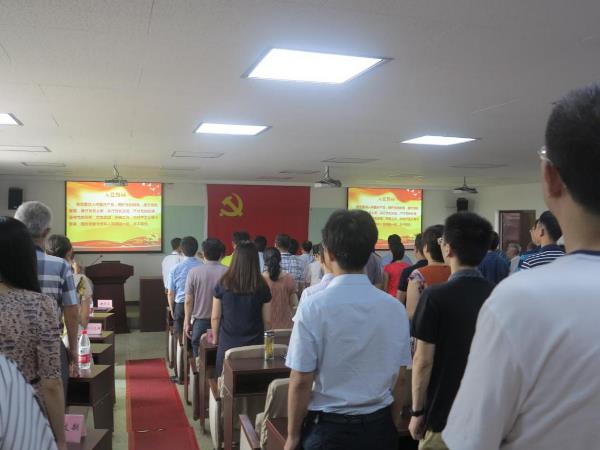 大會在莊嚴的國歌聲中拉開序幕,6名新黨員在黨群部部長王輝同志的帶領(lǐng)下面對黨旗莊嚴宣誓,與會人員全體起立,重溫了入黨誓詞。