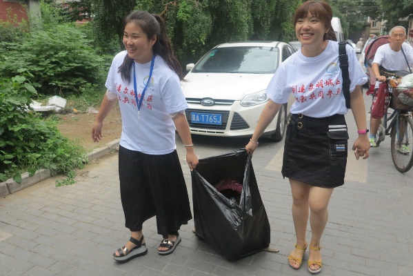 上午9點(diǎn),大家一同走進(jìn)人定湖西里社區(qū),積極分工合作,有的撿拾白色垃圾、有的清理綠化帶中的雜物、有的運(yùn)輸垃圾等。盡管烈日當(dāng)頭,蚊蟲叮咬,但大家毫無怨言,干勁十足,都在為做維護(hù)公共環(huán)境的實(shí)踐者和保護(hù)者盡一份責(zé)任。