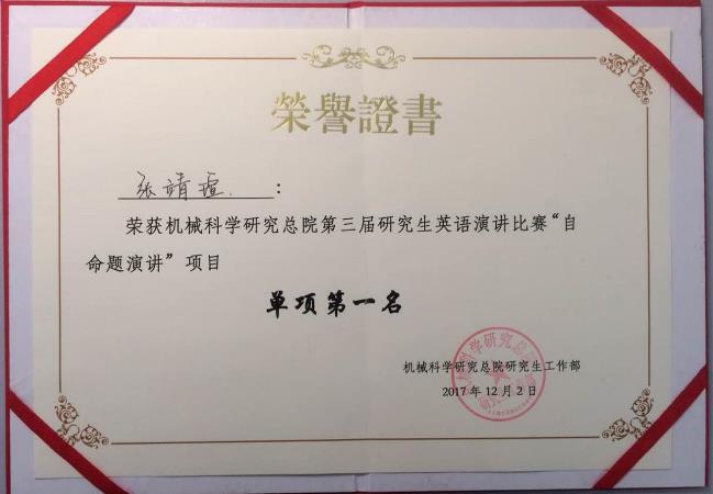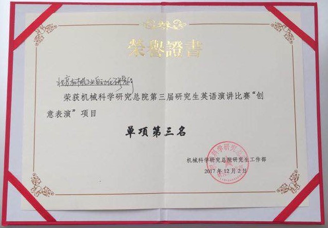12月2日,北京機(jī)械工業(yè)自動化研究所(以下簡稱北自所)研究生代表隊(duì)參加了機(jī)械科學(xué)研究總院第三屆研究生英語演講比賽。