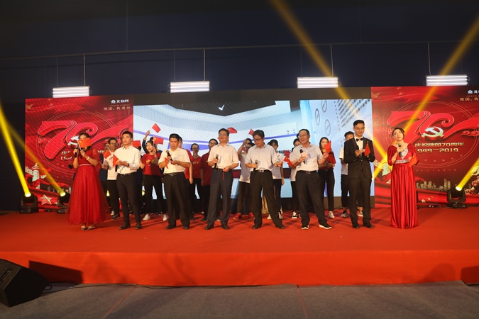 在演出的最后,北自所領(lǐng)導(dǎo)走上舞臺(tái)和現(xiàn)場人員合唱《我和我的祖國》將氣氛帶入高潮,200余名職工揮舞著國旗,一起歌唱祖國,共同慶祝盛世華誕,文藝匯演在裊裊歌聲和雷鳴般的掌聲中緩緩落幕。