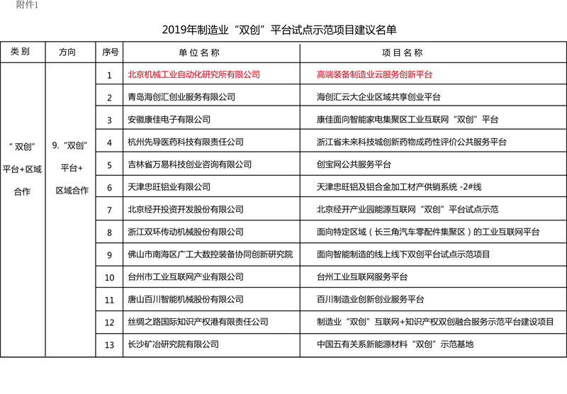 為深入貫徹《國務(wù)院關(guān)于深化制造業(yè)與互聯(lián)網(wǎng)融合發(fā)展的指導(dǎo)意見》(國發(fā)[2016]28號),北自所結(jié)合自身業(yè)務(wù)特點和優(yōu)勢,按照《工業(yè)和信息化部辦公廳關(guān)于組織開展2019年制造業(yè)“雙創(chuàng)”平臺試點示范項目申報工作的通知》(工信廳信軟函〔2018〕146號)的相關(guān)要求,申報“雙創(chuàng)”平臺+區(qū)域合作方向項目。經(jīng)過綜合評審,工業(yè)和信息化部公示了擬核定2019年制造業(yè)“雙創(chuàng)”平臺試點示范項目名單,北自所申報的《高端裝備制造業(yè)云服務(wù)創(chuàng)新平臺》項目入選“雙創(chuàng)”平臺+區(qū)域合作方向名單目錄。