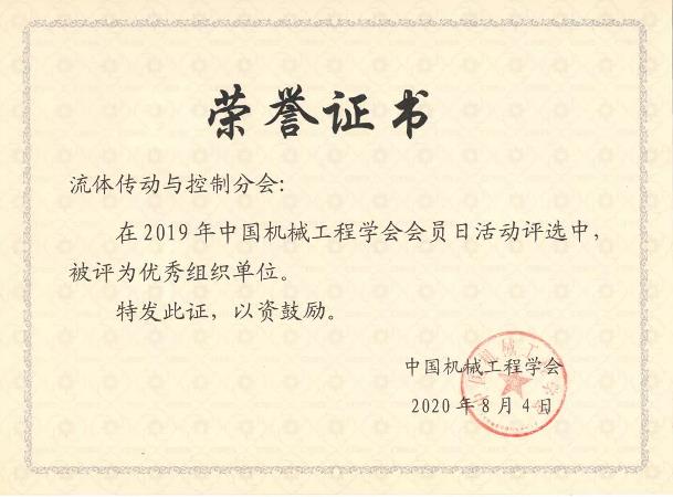 2020年8月,流體傳動與控制分會憑借形式多樣,內(nèi)容豐富的會員日活動,在“2019年中國機(jī)械工程學(xué)會會員日”活動評選中被評為優(yōu)秀組織單位。