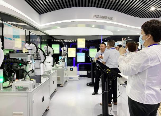 隨后,學(xué)習(xí)小組參觀了北自所智能制造實(shí)驗(yàn)室。實(shí)驗(yàn)室是基于智能制造整體解決方案打造而成,將設(shè)備、自動(dòng)化產(chǎn)線、智能物流倉(cāng)儲(chǔ)系統(tǒng)、生產(chǎn)指揮系統(tǒng)、工業(yè)管理軟件等智能制造的關(guān)鍵環(huán)節(jié)進(jìn)行精準(zhǔn)還原和完整呈現(xiàn)。在參觀了智能制造實(shí)驗(yàn)室之后,學(xué)習(xí)小組對(duì)智能制造過(guò)程有了更直觀、真切的感受。