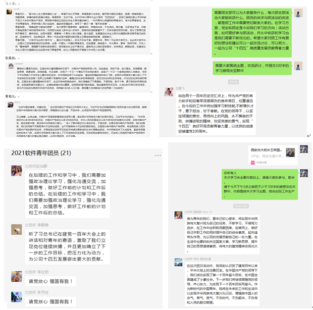 各團(tuán)支部書記帶領(lǐng)大家學(xué)習(xí)了習(xí)近平總書記在慶祝中國共產(chǎn)黨成立一百周年大會上的講話,重點(diǎn)對偉大建黨精神的四個方面、“以史為鑒、開創(chuàng)未來”的八項(xiàng)具體要求進(jìn)行了解讀,尤其對習(xí)近平總書記對青年的寄語進(jìn)行了闡釋,號召支部團(tuán)員青年要謹(jǐn)遵習(xí)總書記教導(dǎo),以實(shí)現(xiàn)中華民族偉大復(fù)興為己任,增強(qiáng)做中國人的志氣、骨氣、底氣,不負(fù)時代,不負(fù)韶華,不負(fù)黨和人民的殷切期望!