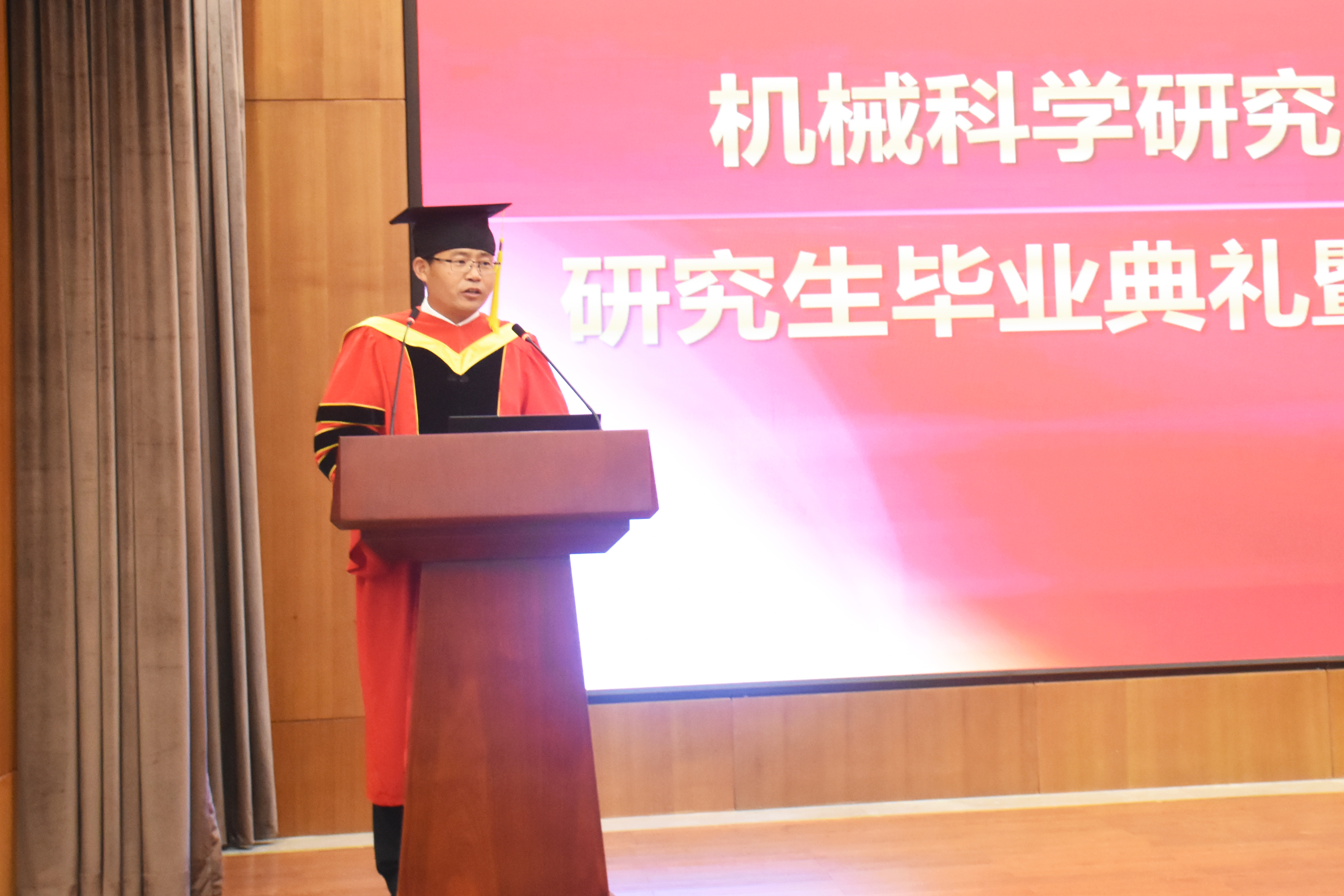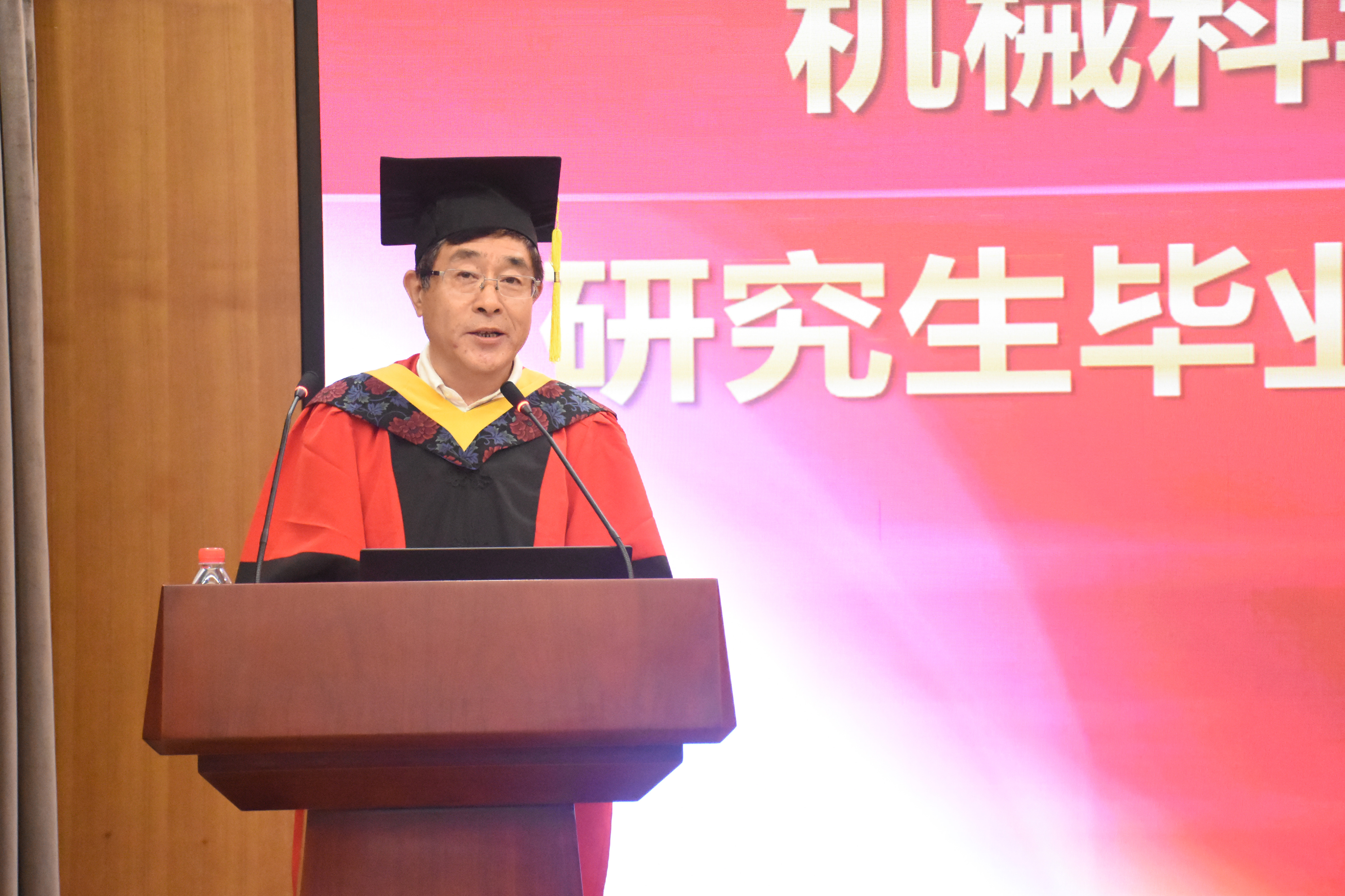 最后,王德成主席作了重要講話,他祝賀所有畢業(yè)生順利畢業(yè)并取得學(xué)位,對(duì)導(dǎo)師、各研究生培養(yǎng)單位以及相關(guān)職能部門的辛勤工作表示感謝,對(duì)家長們的默默付出致以敬意,并對(duì)畢業(yè)生們?cè)诮窈蟮膶W(xué)習(xí)工作中提出了三點(diǎn)希望:一是希望同學(xué)們牢固樹立正確的人生觀、價(jià)值觀,恪守做人之道,牢記習(xí)近平總書記“愛國、勵(lì)志、求真、力行”的囑托,進(jìn)一步培養(yǎng)自己的高尚情操,提升自己的人格品味;二是希望同學(xué)們不斷學(xué)習(xí)、持續(xù)提升和全面發(fā)展,永葆進(jìn)取之心,在新時(shí)代有新?lián)?dāng)和新作為,“幸福都是奮斗出來的,奮斗本身也是一種幸福”,“每個(gè)青年都應(yīng)該珍惜這個(gè)偉大時(shí)代,做新時(shí)代的奮斗者”;三是希望同學(xué)們志存高遠(yuǎn),“自信人生二百年,會(huì)當(dāng)水擊三千里”,不斷發(fā)揚(yáng)創(chuàng)新精神和“工匠精神”,腳踏實(shí)地,愛黨愛國、愛院愛家,奏響更加精彩的人生篇章。