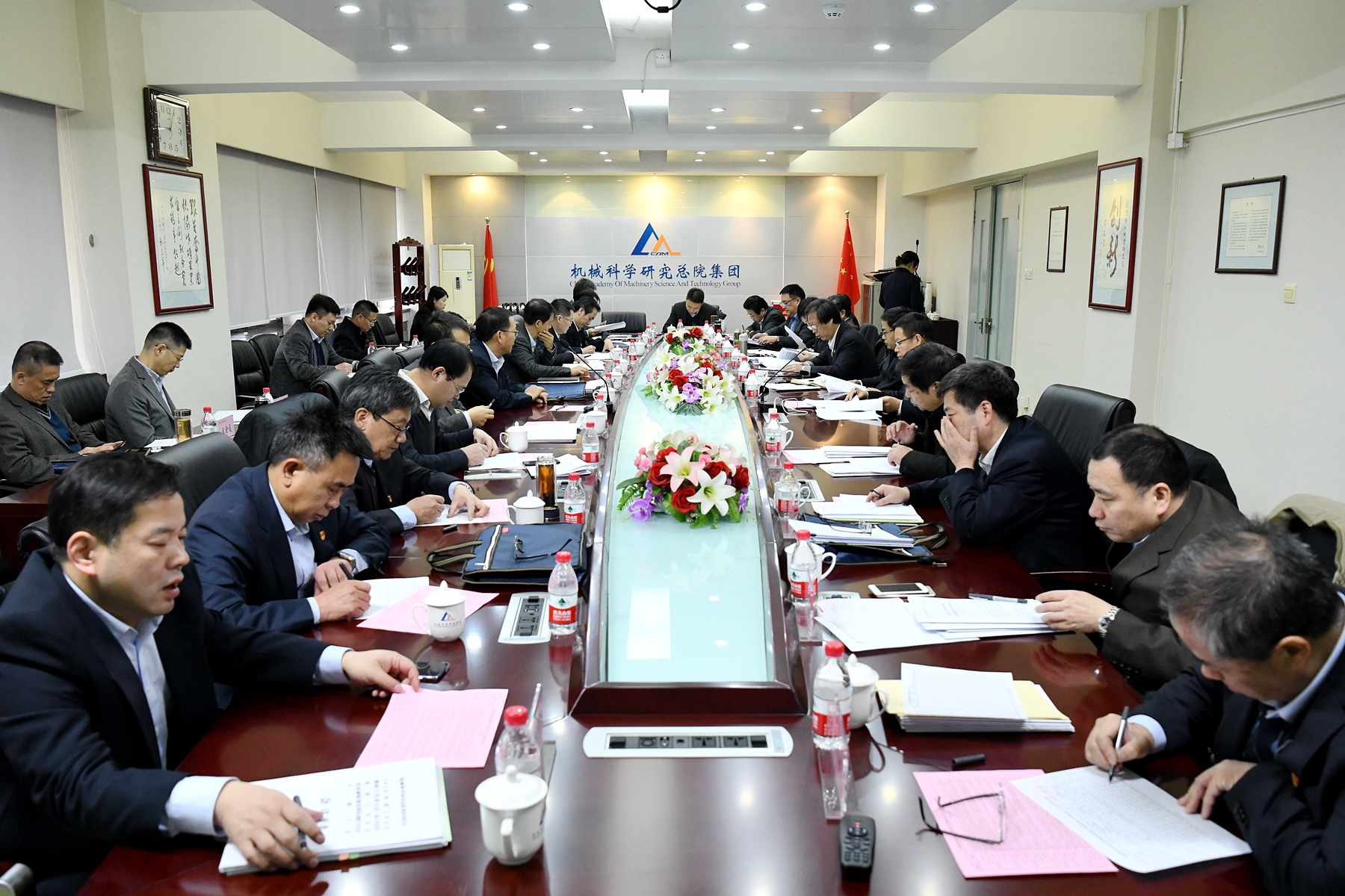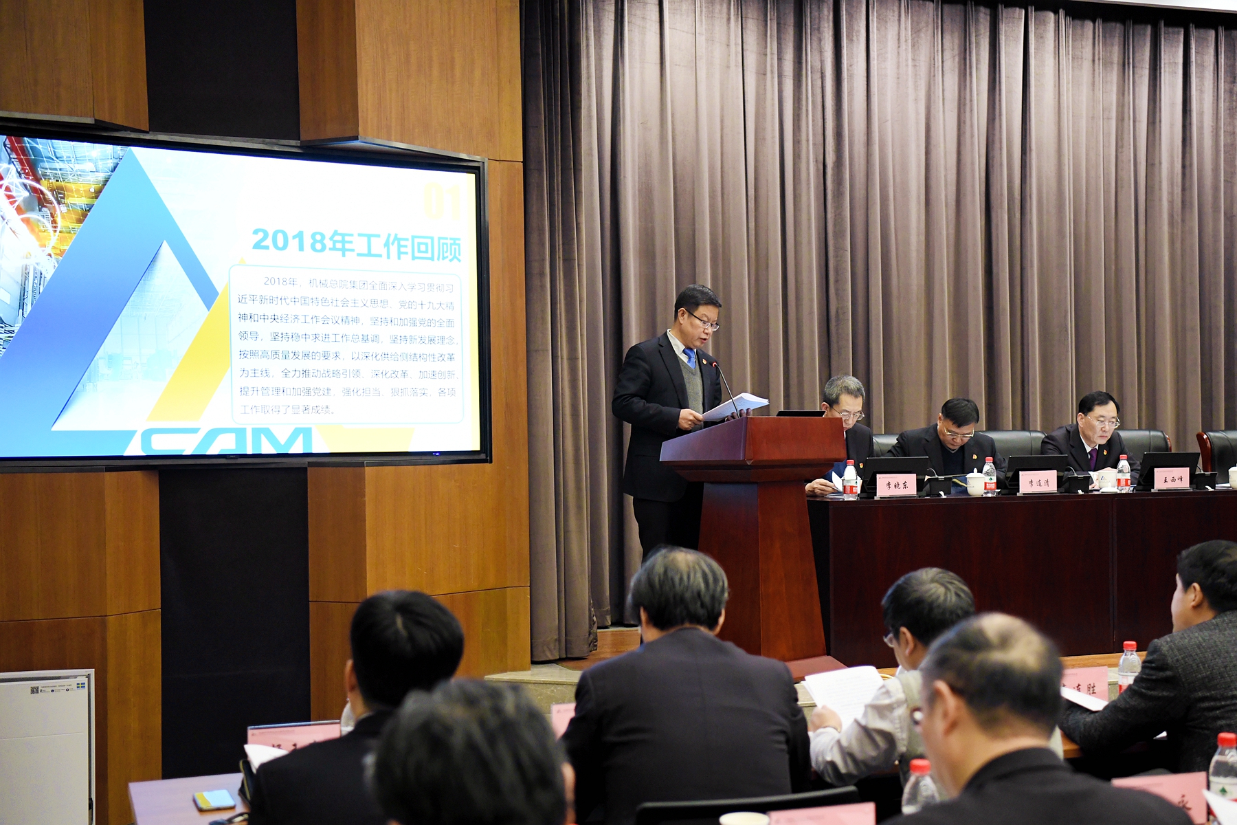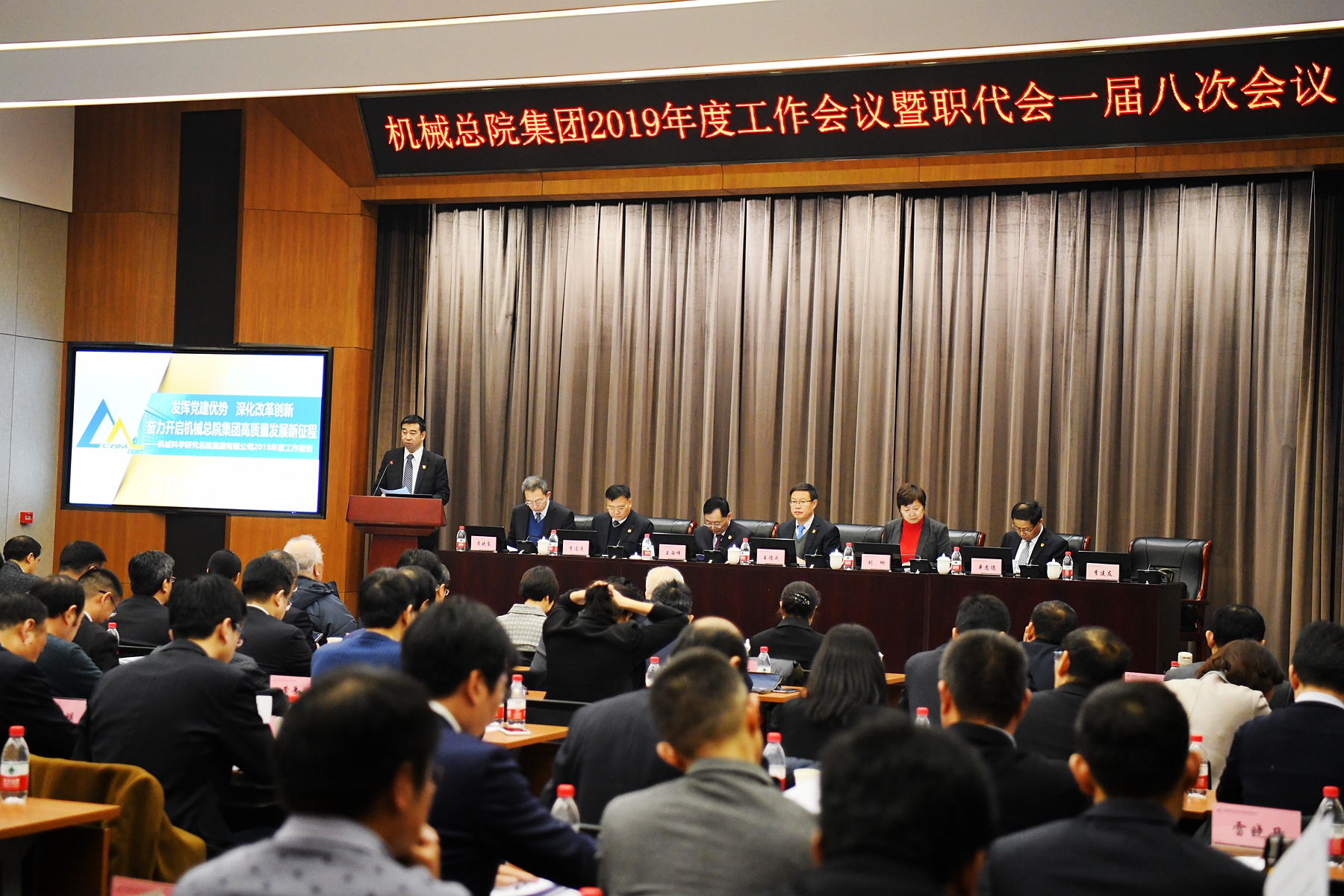 王德成董事長、黨委書記、總經(jīng)理代表集團(tuán)領(lǐng)導(dǎo)班子在年度工作會議上作了《發(fā)揮黨建優(yōu)勢 深化改革創(chuàng)新 奮力開啟機(jī)械總院集團(tuán)高質(zhì)量發(fā)展新征程》的工作報告,報告全面回顧了機(jī)械總院集團(tuán)2018年度工作,傳達(dá)了國資委對中央企業(yè)和地方國資委的工作要求,客觀分析了集團(tuán)當(dāng)前面臨的形勢和任務(wù),詳細(xì)部署了集團(tuán)2019年度工作。王德成董事長指出:2018年,機(jī)械總院集團(tuán)全面深入學(xué)習(xí)貫徹習(xí)近平新時代中國特色社會主義思想、黨的十九大精神和中央經(jīng)濟(jì)工作會議精神,堅持和加強(qiáng)黨的全面領(lǐng)導(dǎo),堅持穩(wěn)中求進(jìn)工作總基調(diào),堅持新發(fā)展理念,按照高質(zhì)量發(fā)展的要求,以深化供給側(cè)結(jié)構(gòu)性改革為主線,全力推動戰(zhàn)略引領(lǐng)、深化改革、加速創(chuàng)新、提升管理和加強(qiáng)黨建,強(qiáng)化擔(dān)當(dāng)、狠抓落實,各項工作取得了顯著成績。2019年,機(jī)械總院將以習(xí)近平新時代中國特色社會主義思想為指導(dǎo),全面貫徹黨的十九大、十九屆二中、三中全會和中央經(jīng)濟(jì)工作會議精神,堅持和加強(qiáng)黨的領(lǐng)導(dǎo),緊緊抓住機(jī)械總院集團(tuán)發(fā)展重要戰(zhàn)略機(jī)遇期,按照高質(zhì)量發(fā)展要求,發(fā)揮黨建優(yōu)勢,深化戰(zhàn)略引領(lǐng),做強(qiáng)應(yīng)用型科研、持續(xù)提升創(chuàng)新力,做優(yōu)服務(wù)型產(chǎn)業(yè)、加力行業(yè)服務(wù)引領(lǐng)力,保持技術(shù)經(jīng)濟(jì)穩(wěn)定增長,為推動裝備制造業(yè)高質(zhì)量發(fā)展、助力制造強(qiáng)國戰(zhàn)略實施做出新貢獻(xiàn)。