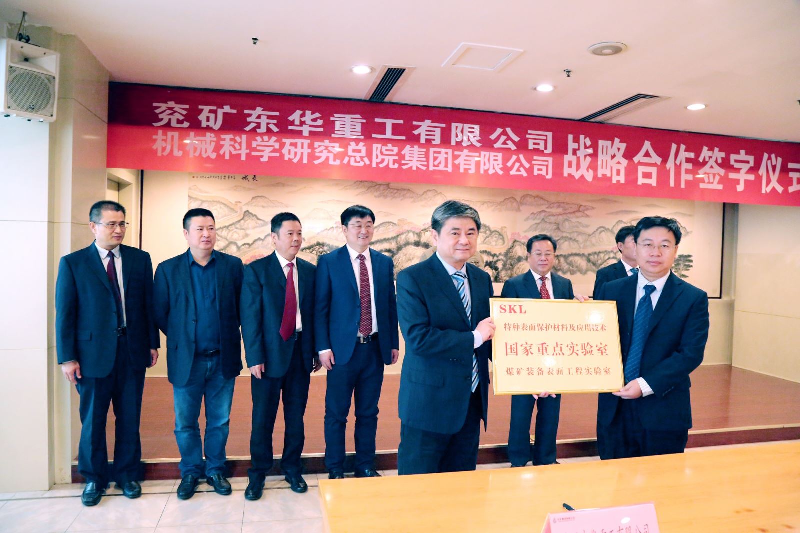 特種表面保護(hù)材料及應(yīng)用技術(shù)國(guó)家重點(diǎn)實(shí)驗(yàn)室在東華重工設(shè)立煤礦裝備表面工程實(shí)驗(yàn)室,材保所總經(jīng)理吳勇授牌,趙峰代表東華重工接牌。