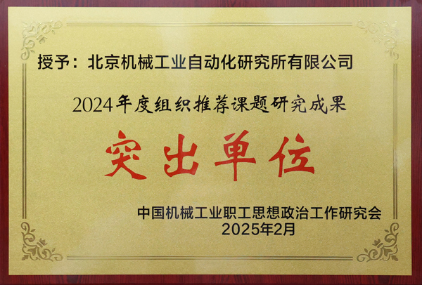 北自所榮獲了2024年度組織推薦課題研究成果突出單位,課題《科技型企業(yè)創(chuàng)新精神的傳承、發(fā)揚(yáng)和實(shí)踐研究》榮獲中國(guó)機(jī)械政研會(huì)一類課題研究成果。
