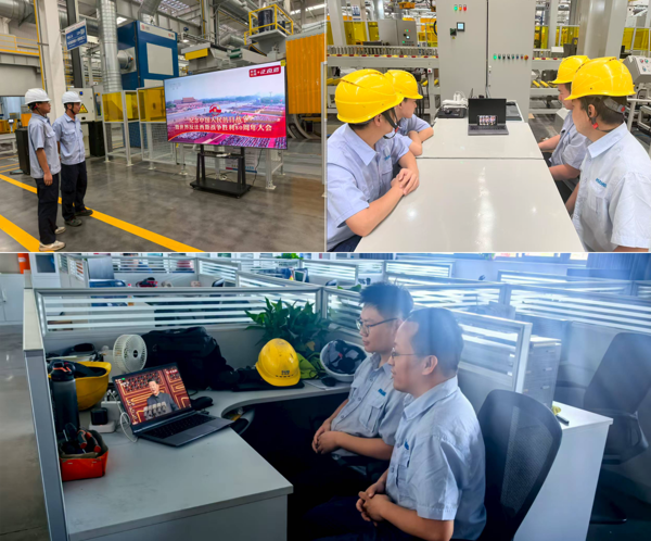 智能裝配事業(yè)部職工在項目現(xiàn)場收看大會直播