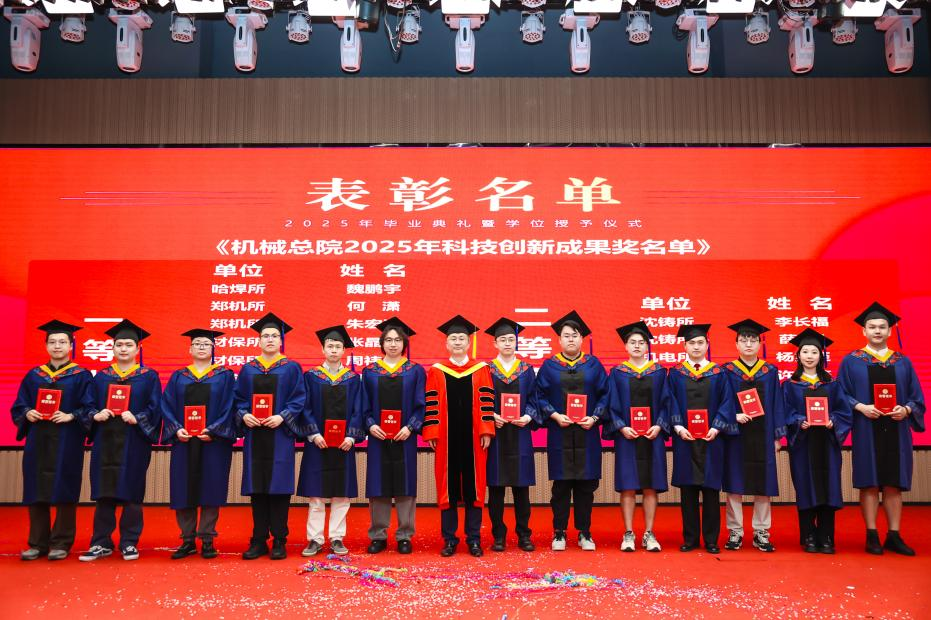 研究生院傾力打造的智慧課程虛擬AI助教“科小研同學”作為典禮第二主持人登上舞臺,現場宣讀了2025年北京市優(yōu)秀畢業(yè)研究生、機械總院優(yōu)秀畢業(yè)研究生、優(yōu)秀學位論文、科技創(chuàng)新成果獎獲得者名單,孟祥宇、李玉鑫、王宇、姜超分別向獲獎同學們頒發(fā)榮譽證書。