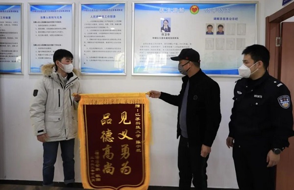 25歲的陳宇航目前在江蘇長江智能制造研究院有限責任公司實習,是江蘇科技大學的研二學生。12月20日晚,陳宇航夜跑至五星橋時,突然聽到有一個微弱的女聲在喊救命。他發(fā)現(xiàn)有一個人仰面躺在河里,已經(jīng)嗆水,隨時有下沉的可能。“不能等了,必須救人。”報警后,陳宇航?jīng)]有一絲猶豫,在逼近0度的寒冬里,把衣服脫得只剩下一條褲衩,從3米左右的駁岸上跳進了冰冷刺骨的河水中。經(jīng)過一番努力,陳宇航在水中艱難的帶著女子游到岸邊等待救援。很快,110和119先后趕到現(xiàn)場,落水女子成功獲救。12月22日下午,落水女子的哥哥向陳宇航送上“見義勇為 品德高尚”的錦旗。