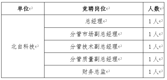 為進(jìn)一步加強(qiáng)公司干部隊(duì)伍建設(shè),激發(fā)干部隊(duì)伍活力,創(chuàng)新選人用人方式,拓寬選人用人渠道,經(jīng)黨委研究,決定對(duì)北自科技經(jīng)理層開(kāi)展公開(kāi)招聘?,F(xiàn)將有關(guān)事項(xiàng)通知如下: