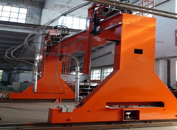 ● 龍門所配二臺焊機(jī)、保護(hù)氣氣瓶(至少2個(gè))、控制柜等均放在龍門兩側(cè)托架上,隨龍門一起移動(dòng),進(jìn)龍門的外部供電線纜采用滑線供給,使得龍門移動(dòng)范圍加大。