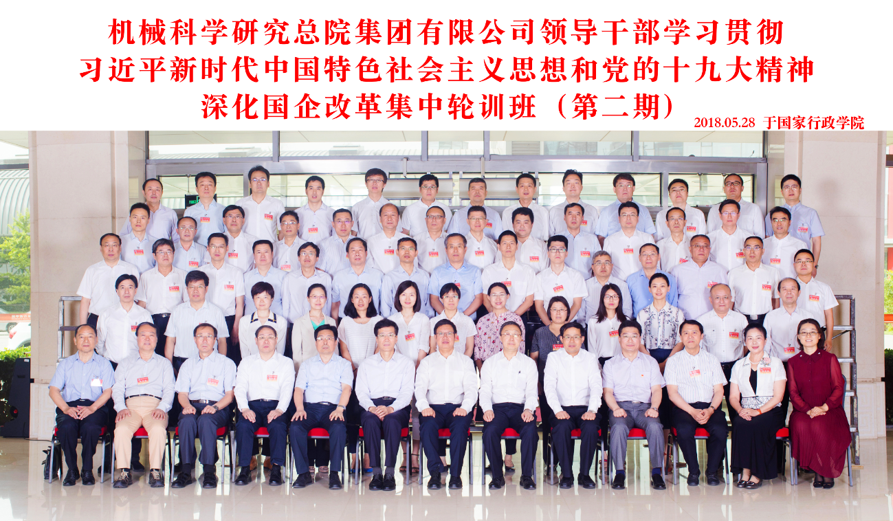5月28日至6月1日,機(jī)械總院集團(tuán)領(lǐng)導(dǎo)干部學(xué)習(xí)貫徹習(xí)近平新時(shí)代中國(guó)特色社會(huì)主義思想和黨的十九大精神、深化國(guó)企改革集中輪訓(xùn)班(第二期)在國(guó)家行政學(xué)院成功舉辦。集團(tuán)黨委書記、董事長(zhǎng)、總經(jīng)理王德成出席開(kāi)班式,并為學(xué)員講授第一課。集團(tuán)黨委副書記、副總經(jīng)理李亞平, 集團(tuán)副總經(jīng)理單忠德,總部中層干部、各直屬單位部分領(lǐng)導(dǎo)班子成員、董監(jiān)高人員參加培訓(xùn)。