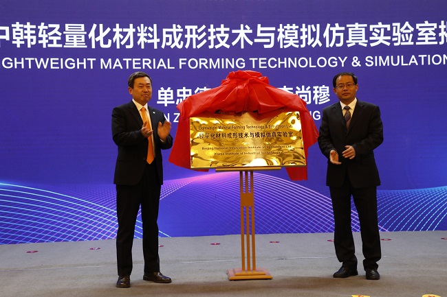 會上,單忠德副總經(jīng)理和李尚穆副院長共同為雙方共建 的“輕量化材料成形技術(shù)與模擬仿真實(shí)驗(yàn)室”揭牌。